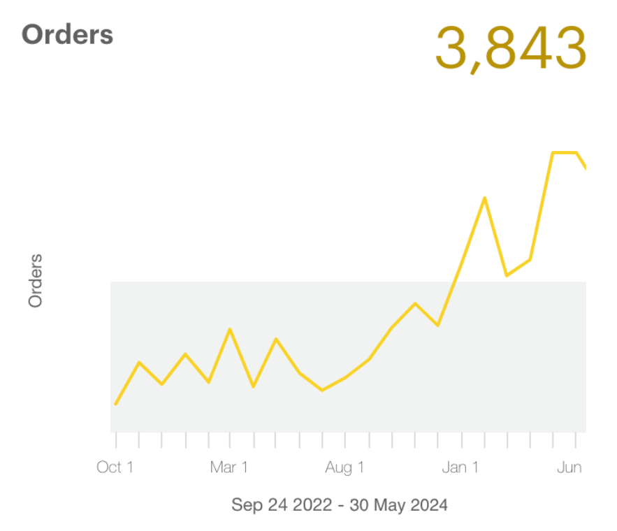 increase in order numbers in 6 months